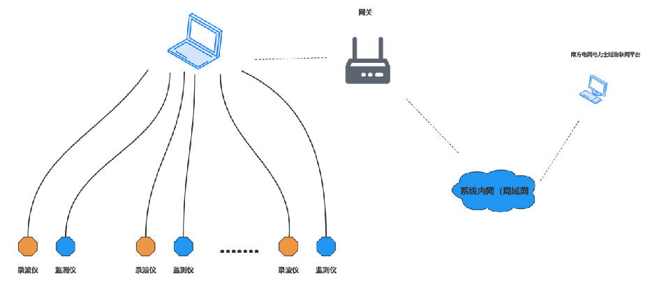 直流避雷器在線監(jiān)測(cè)系統(tǒng)主要由直流在線監(jiān)測(cè)儀、直流故障錄波儀以及后臺(tái)在線監(jiān)測(cè)系統(tǒng)三個(gè)部分組成。直流避雷器在線監(jiān)測(cè)系統(tǒng)接入了現(xiàn)場(chǎng)的網(wǎng)關(guān),通過網(wǎng)關(guān)將數(shù)據(jù)推送至南方電網(wǎng)電力全域物聯(lián)網(wǎng)平臺(tái)。